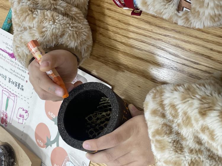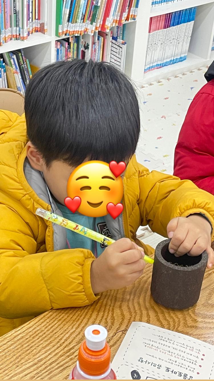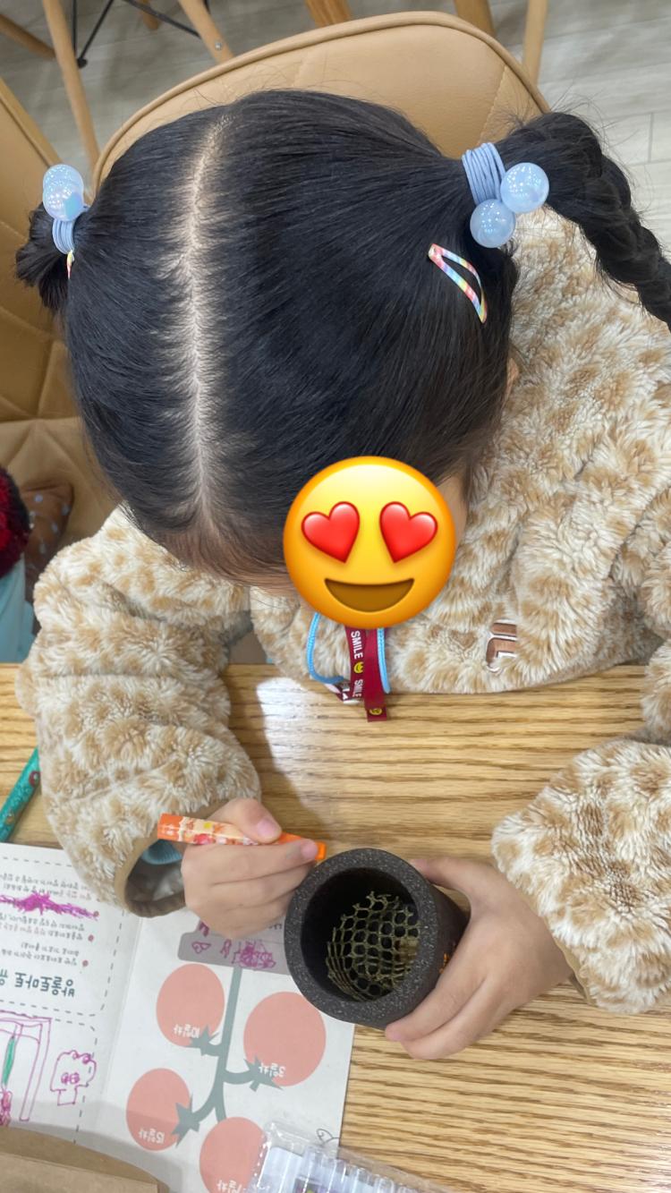 작은 손으로 화분 겉면을 자신만의 스타일로 꾸미며, 나만의 화분을 만들어 나가는 아이들의 모습입니다.