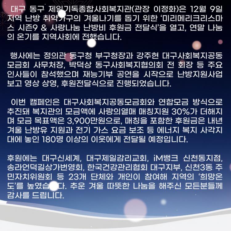 [제일기독종합사회복지관] 2025년 미리메리크리스마스 & 사랑나눔 후원금 전달식