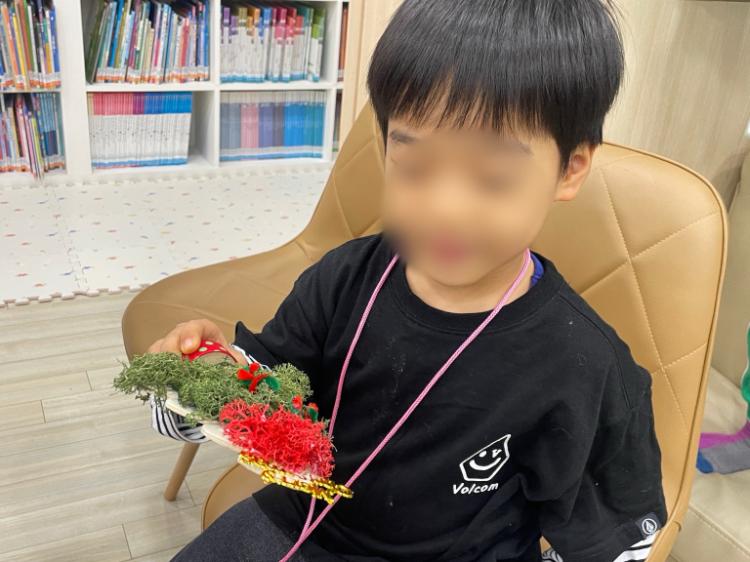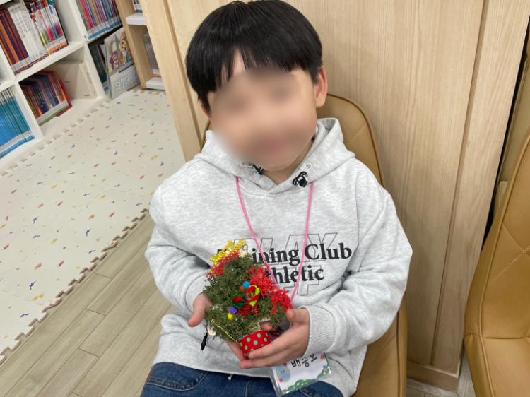 우선 나무 심기가 환경에 주는 긍정적인 영향을 이해하기 위해 교육을 시청한 후 공기정화 식물인 스칸디아를 활용하여 크리스마스 트리를 만들어 보았습니다! 작은 손으로 식물을 직접 만져보고 장식을 붙이면서 소근육 발달에 도움을 줄 수 있었습니다 너무나도 개성있는 트리 5개가 완성이 되었답니다!
