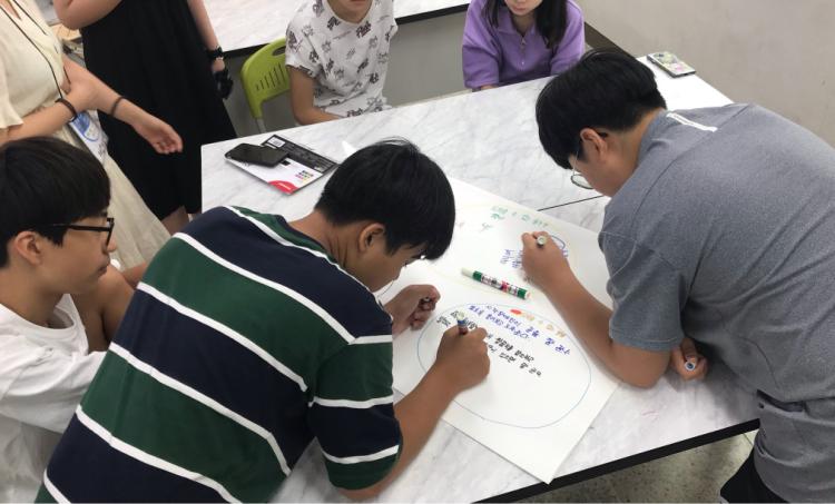 7월 23일 2일차 포산중학교 청소년 자원봉사학교를 진행하였습니다. 어제 배운 봉사활동에 대한 이론을 접목하여 오늘은 장애의 종류 중 시각장애, 지체장애에 대해 알아보고 직접 역할극을 통해 체험활동을 해보았습니다. 시각장애인, 지체장애인 역할을 해보고 장애인의 입장에서 생각해보았으며, 비장애인 입장에서도 도와줄 수 있는 역할을 함께 해 보았습니다. 포토보이스로 나누는 자원봉사 시간을 통해 자원봉사를 사물에 빗대어 표현해보았습니다. 빗대어 표현한 단어가 겹치는 경우도 있었지만 그 이유는 각자 달랐으며, 친구들의 생각대로 풍부하고, 다양한 단어에 빗대어 자원봉사를 표현하였습니다. 이틀간 배운 내용과 느낌 등을 활동 회고 빙고를 통해 마무리 하였습니다. 이틀간 성실하게 참여해준 포산중학교 학생들에게 칭찬의 박수를 보냅니다~!