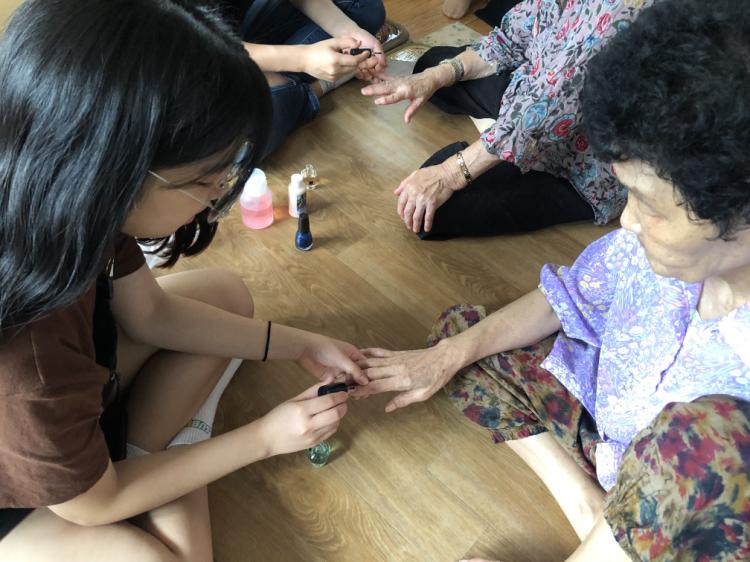 오전 활동을 마치고 오후에는 사촌마을회관에 방문하였습니다. 무더운 날씨에도 웃으며 손마사지와 네일아트를 통해 어르신들에게 웃음 꽃을 피게 해준 우리 북동중학교 친구들에게 감사함을 전합니다.