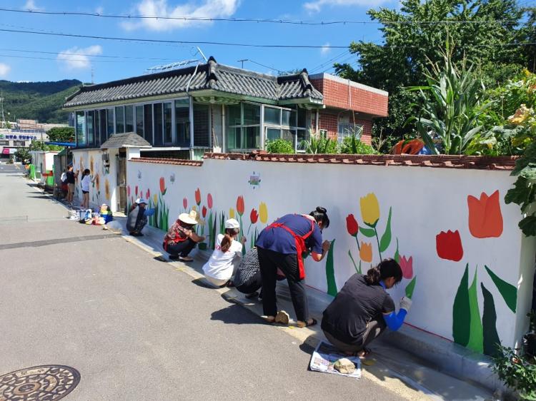 | [달성군종합사회복지관] 함우리 공동체 마을환경개선 벽화그리기 마무리 활동 진행 |