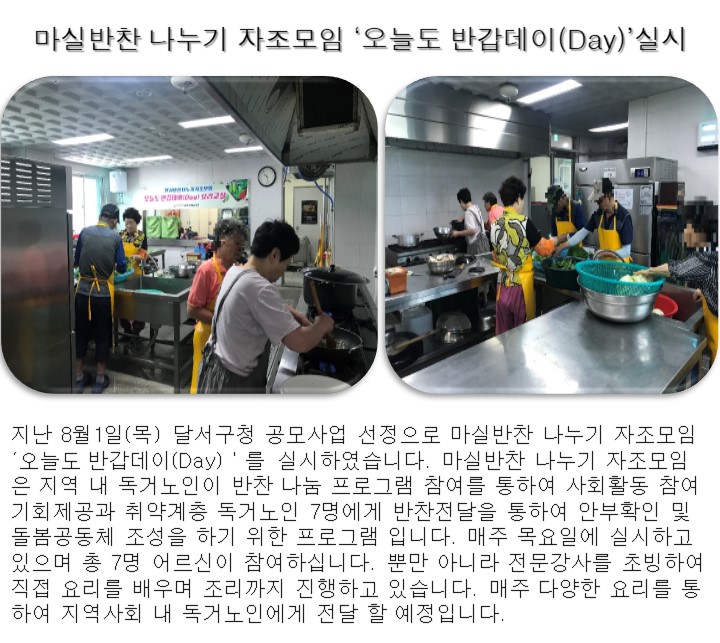 [달서구본리종합사회복지관] 마실반찬 나누기 자조모임 '오늘도 반갑데이(Day)' 실시