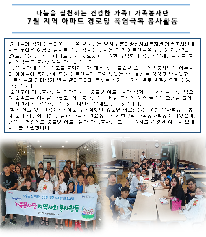 [달서구본리종합사회복지관]가족봉사단 7월 봉사활동 실시