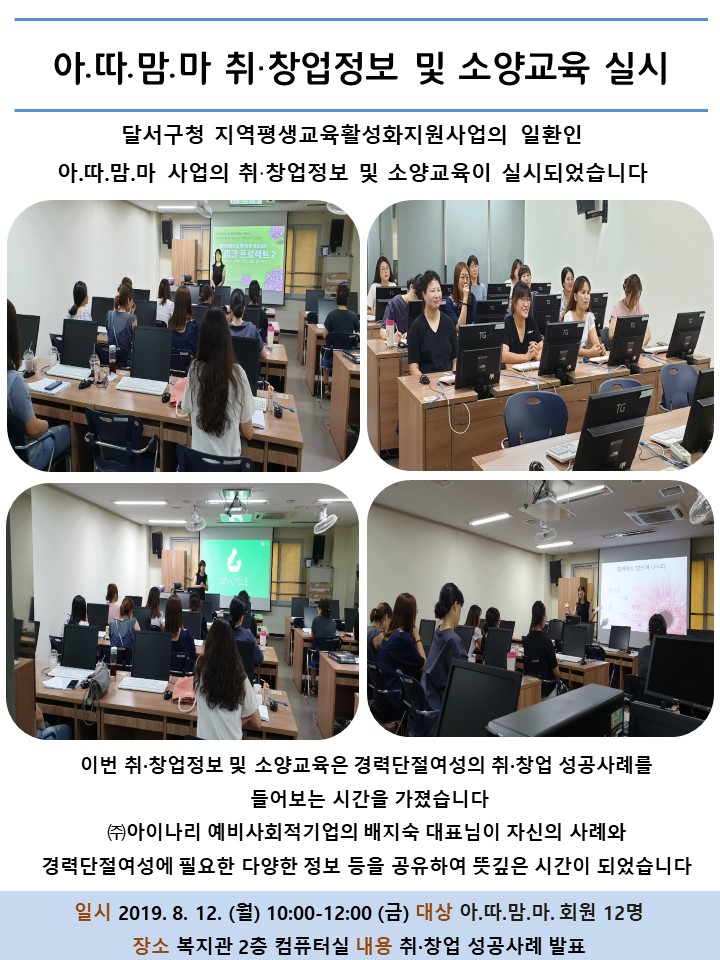 [달서구본리종합사회복지관] 아.따.맘.마 취/창업정보 및 소양교육 실시