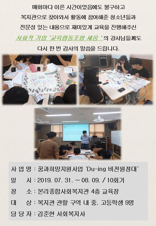[달서구본리종합사회복지관] 꿈과희망지원사업 'Du-ing 비전원정대'