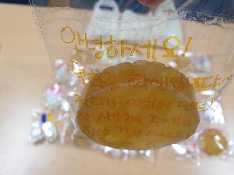 2020. 7.20(월) 올해 처음으로 학교복지네트워크 1004봉사단프로그램이 덕화중학교에서 실시되었습니다. 코로나-19로 인해 아직까지는 조심스러운 부분도 있지만 거리두기를 잘 실천하고 개별키트를 활용해서 첫 수업 잘마칠수 있었습니다. 오늘 덕화중학교 학생들이 정성들여 만든 천연비누와 마스크팩 20세트는 학생들의 뜻을 담아 필요로 하는 곳에 잘 전달하도록 하겠습니다. ^^ |