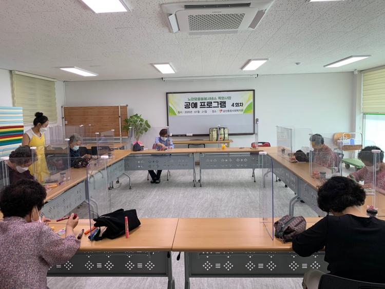 | [남산종합사회복지관] 노인맞춤돌봄서비스 특화사업 4회기 집단 프로그램 (공예) : 조명 만들기 |