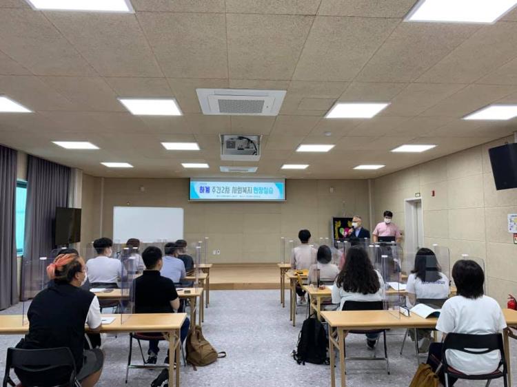 “지역주민이 365일 행복한 남산종합사회복지관입니다” 어느 덧 8월이네요~ 오늘은 주간2차 하계사회복현장실습 첫 날로 진행되었습니다~ 이번에는 총 14명의 실습생들이 참여를 하였는데요~ ...먼저 신상윤 관장님의 인사말씀으로 시작해 간단한 오리엔테이션, 실습생들의 자세 및 태도, 복지관 및 대구광역시장애인재활협회 소개, 프로포절 작성법 등에 대해 알려주었습니다~ 약 1달간 진행될 실습 안전하고, 실습생들이 많은 것 얻어가시는 시간 되도록 최선을 다해 진행하도록 하겠습니다~^^ ***** 코로나-19 예방 및 확산 방지를 위해, 참석자 전원은 체온 확인•손 소독•마스크 착용•가림막 설치를 하였습니다.
