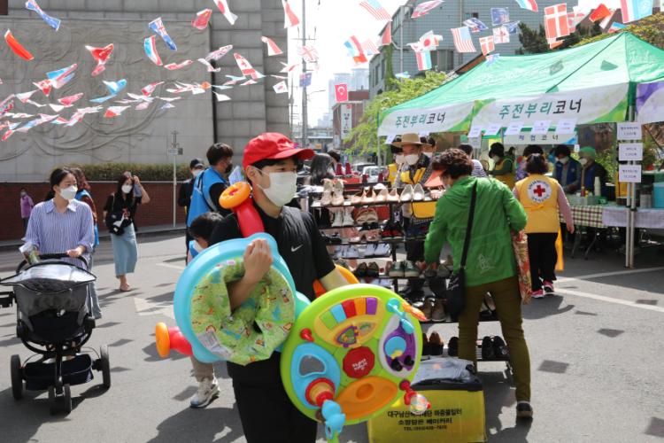 23일(토) 복지관 1층 주차장에서 '나누어 봄 바자회'가 개최되었습니다. 2년만에 열린 봄 바자회였는데요 많은 먹거리, 볼거리, 체험부스, 다양한 공연등 성황리에 진행 되었습니다. 이번 바자회는 개인, 관공서, 기업 등 다방면에서 후원이 되었고 많은 자원봉사자들이 참여해주셨습니다. 그리고 처음으로 쌈지공원을 활용하여 포토존 촬영, 옛날간식뽑기, 달고나 등 다양한 체험부스도 진행되었습니다. 이번에 바자회를 위해 아낌없이 후원해주신 후원자분들과 함께해주신 봉사자 그리고 바자회를 찾아와 주신 모든분들께 감사인사를 드리며 지역주민들을 위해 최선을 다하는 복지관이 되도록 항상 노력하겠습니다^^