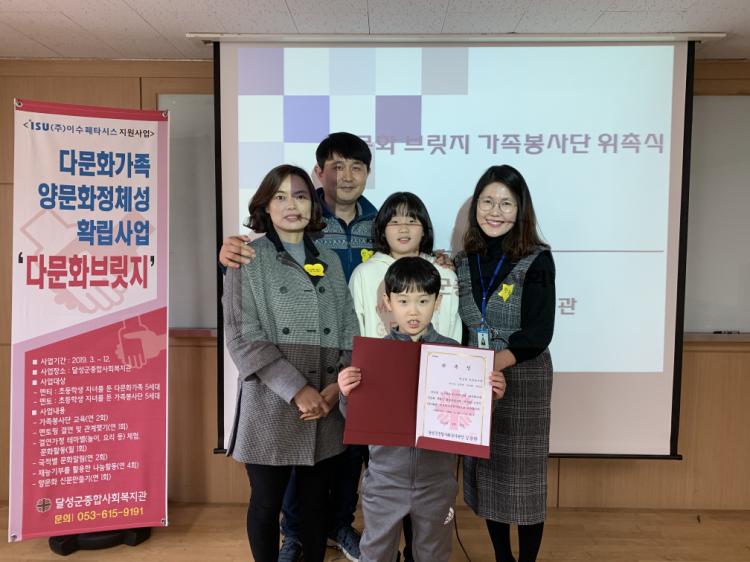 | [달성군종합사회복지관]다문화가족양문화정체성확립프로그램 '다문화브릿지' 가족봉사단 위촉식 및 멘토링 교육 |