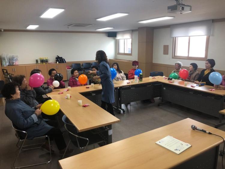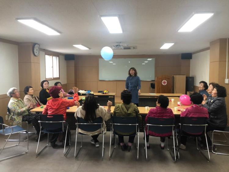 2019. 3. 25. 월요일, 여성독거노인 사회참여프로그램 "우,행.시" Silver Story Teller 3회기 활동은 참여어르신들의 활기찬 인사소리로 시작되었습니다. 오늘은 [방귀시합] 동화책을 통해 하늘에 떠있는 달 안에 절구통 모양이 생기게 된 재미있는 유래부터 동화책 주인공을 응원하며 참여어르신들은 점점 동화 속에 빠져들었습니다. 동화 속 내용 중 일부를 직접 자신의 목소리와 손유희로 표현해보는 시간과 더불어 동화내용과 연결시킨 풍선게임을 통해 더욱 어르신들의 기억에 잘 담겨질 수 있도록 하였습니다. 어깨안마를 마지막으로 서로에 대한 응원과 격려하며 활동을 마무리 하였습니다. 앞으로도 참여어르신들의 활동에 많은 응원부탁드립니다!^^