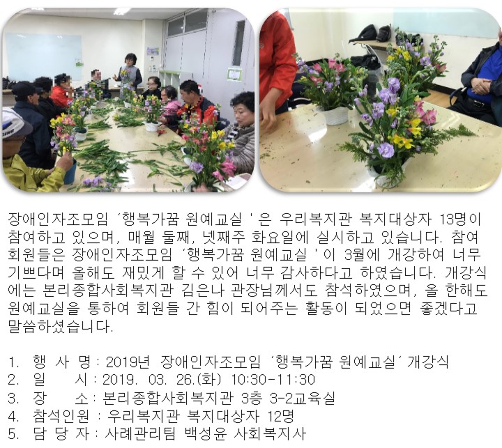 [달서구본리종합사회복지관] 2019년 장애인자조모임 '행복가꿈 원예클럽' 개강식