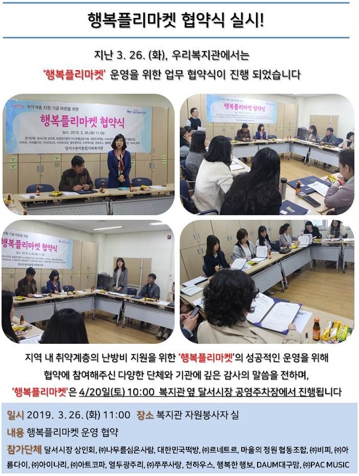[달서구본리종합사회복지관] 행복플리마켓 협약식 실시