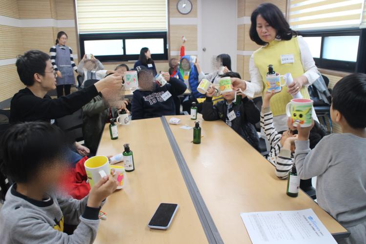 13명의 아이들과 한국장학재단 3명의 지식봉사단 선생님과 함께 첫 시간은 프로그램 소개, 꿈담은 머그컵 만들기, 천연바디워시 만들기, 맛있는 점심식사 순으로 진행되었습니다. 올해도 다양한 문화활동을 하며 아이들 마음에 예쁜 꿈이 자라나길 응원하며 3년차 프로그램을 후원해 주시고 계신 한국장학재단에 감사드립니다. |