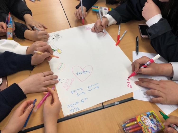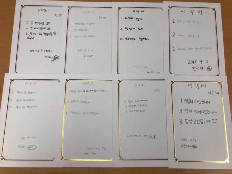 2019. 4. 3.(수) 천내중학교에서 청소년활동역량강화프로그램 ‘비전스쿨’ 오리엔테이션을 진행하였습니다. 2018년도에 이어 2019년에도 8명과 함께하는 '비전스쿨' 전년도 꿈 제작ucc 영상을 보며 어떠한 프로그램인지에 대하여 좀 더 깊이있게 이해하는 시간이 되었으며 영상을 보며 느낀점에 대해서 함께 표현해보는 시간도 가졌습니다. 이와 더불어 Who am i 활동을 통해 1년 간 함께 할 친구들에게 자신을 소개해보는 시간과 함께 서약서 작성을 통해 프로그램 안에서 서로 간의 이야기를 비밀로 가지기도 하고 열심히 참석하기로 약속하였습니다. 끝으로, 준비된 과를 먹으며 앞으로 활동에 대한 기대감과 함께 마무리하였습니다.