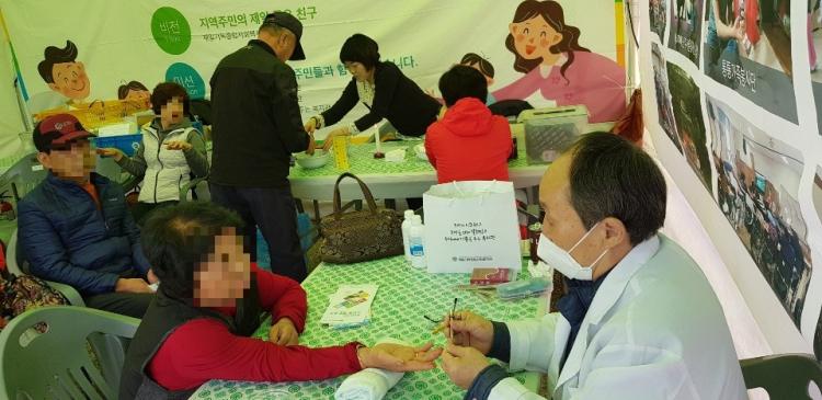 3월 30(토)~3월 31(일) 금호강 지저동 둔치 일원에서 동구청이 주관하는 동구어울림마당이 진행되었습니다. 우리 복지관에서는 지역주민들의 대상으로 '손으로 지키는 건강 수지침' 부스를 진행하였습니다. 이 날 날씨가 좋지 않음에도 불구하고 지역주민 188명이 수지침 및 뜸 부스를 참여하여 건강에 대한 많은 관심을 보여주었습니다.