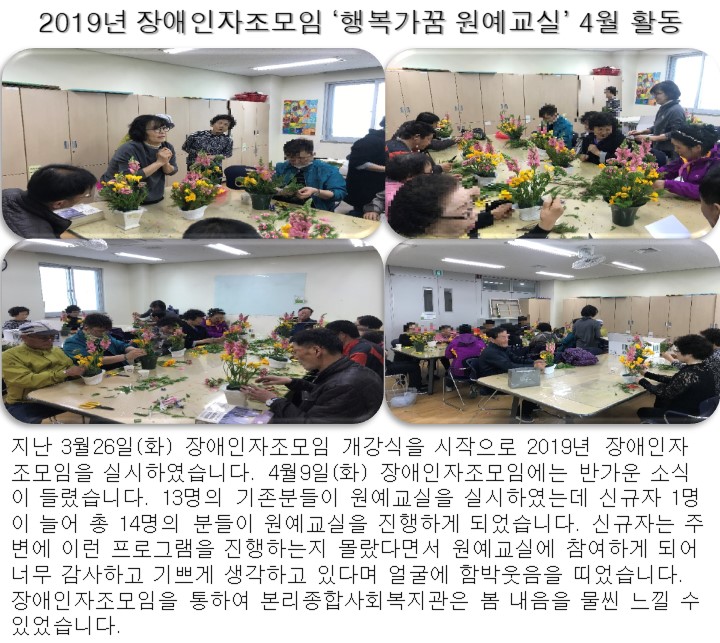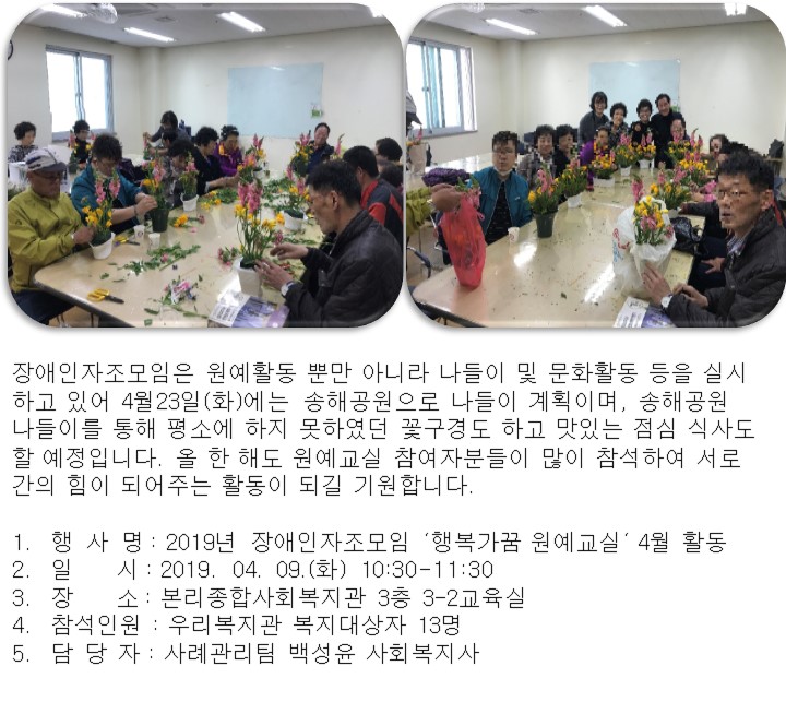 [달서구본리종합사회복지관] 2019년 장애인자조모임 '행복가꿈 원예클럽' 4월 활동 실시