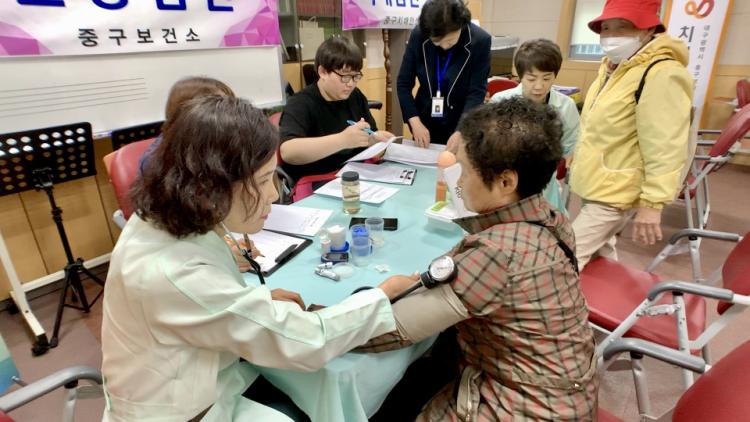 4월 25일(목) 동막교회에서 2019년 중구한마음순회봉사 첫 시작을 하였습니다~!!^^ 한방진료, 물리치료, 인바디, 천연비누만들기 등 27가지의 서비스를 전문봉사단이 함께 진행하였는데요~ 류규하 중구청장님께서 오셔서 자원봉사자를 격려해주시고, 어르신들과 인사를 나누었답니다~ 자원봉사자, 지역주민 등 500여명이 참여해주셔서 풍성한 행사가 되었답니다~!!^^