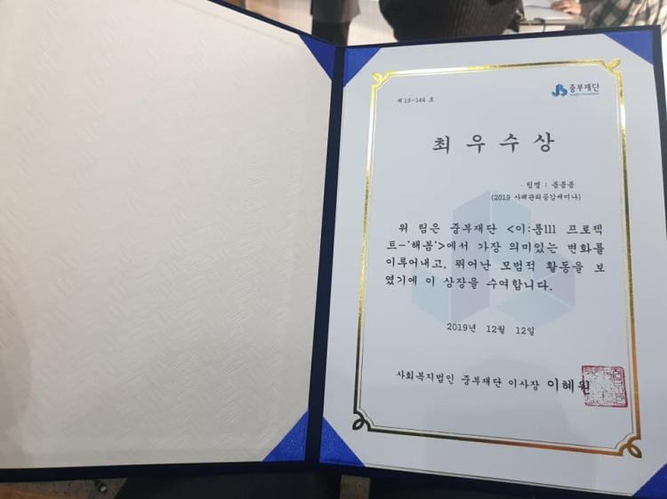 # 중부재단 이룸3 해봄프로젝트 지난 사례관리공감세미나 이후 오늘 중부재단 이룸사업 최종평가회를 다녀왔습니다. 바쁘지만 뜻있는 세미나를 위해 적극적으로 함께 해주신 우리 봄봄봄 팀원들 정말 감사드립니다. 이것으로 끝나는 것이 아니라 이 상이 원동력이 되서 내년 세미나도 함께 잘 준비했으면 합니다~^^ 모두모두 수고많으셨습니다!