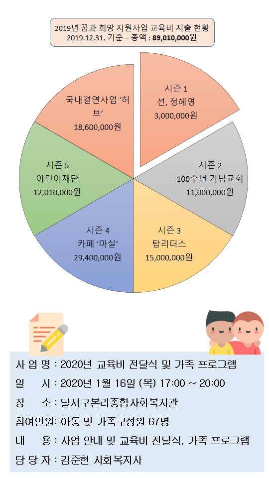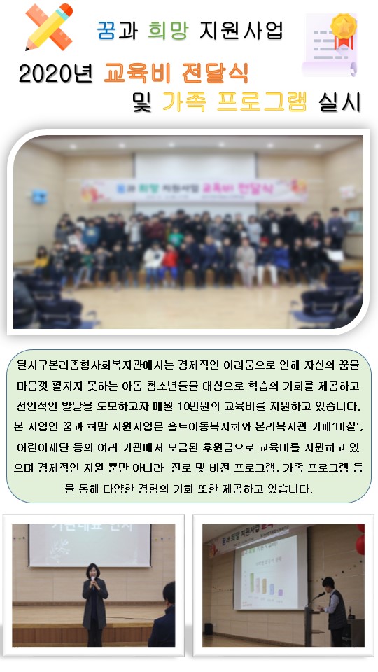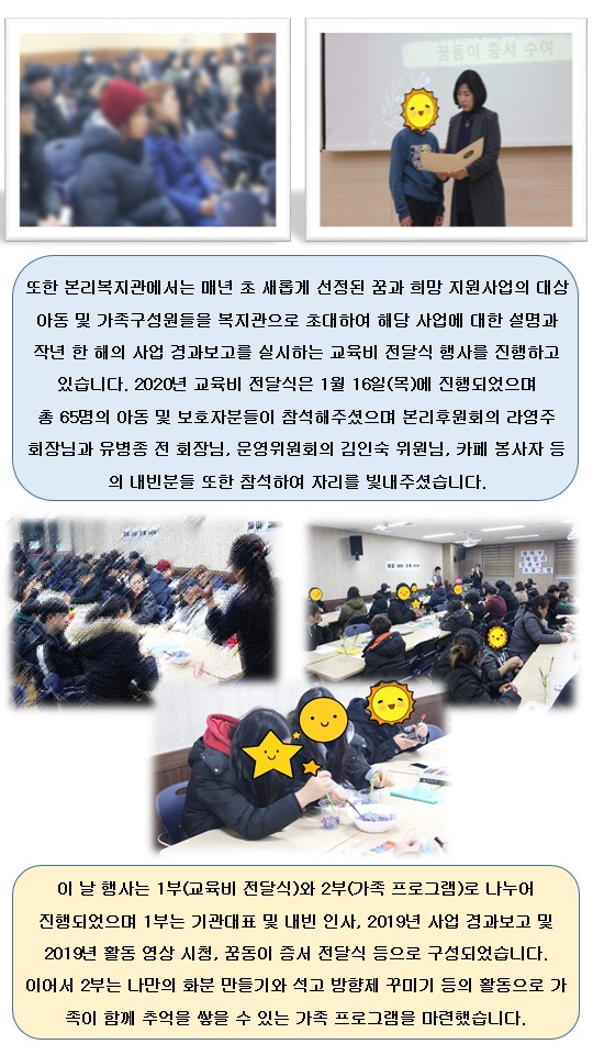 2020년 꿈과 희망 지원사업 교육비 전달식 및 가족 프로그램 실시