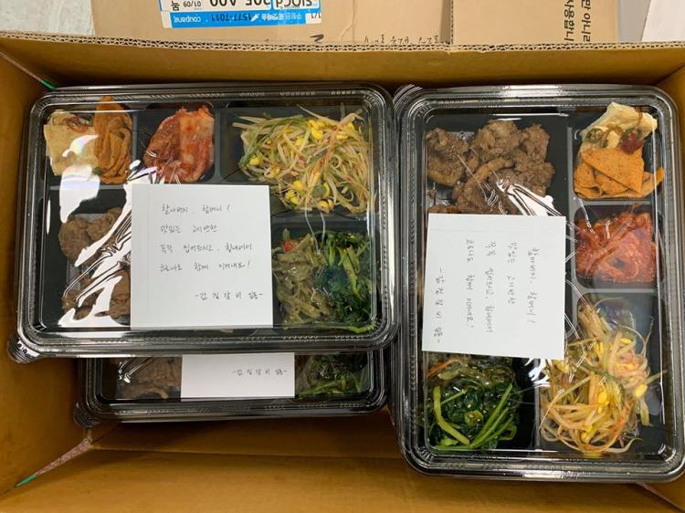 값질갈비에서 코로나로 힘들어하고 있을 어르신들에게 도시락을 지원해주셨습니다~도시락 하나 하나 정성스레 맛있는 음식과 응원의 메시지를 다 써서 주셨답니다~코로나 극복을 위해 후원해주신 값질갈비에 다시 한 번 감사를 드립니다.