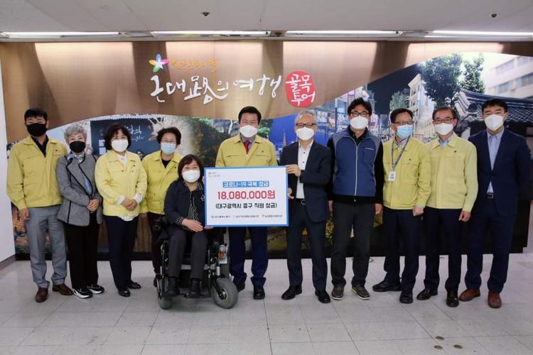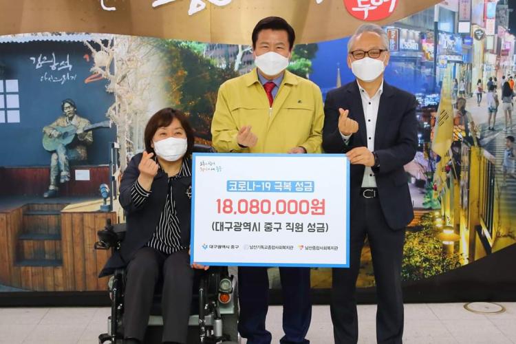대구 중구청 직원들이 코로나19 극복을 위해 18,080,000을 남산기독교종합사회복지관과 남산복지관에 9,040,000원씩 후원해주셨습니다.