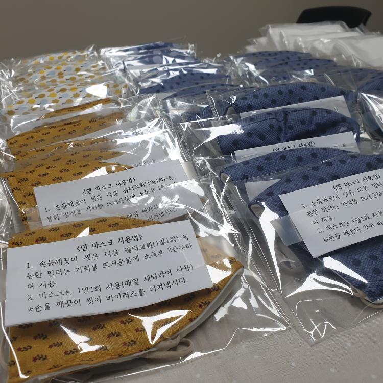 코로나19 극복을 위하여 지역주민과 직원에게 황금종합사회복지관의 자원봉사 단체인 "사금회"의 회원중 한분께서 손수 만드신 마스크를 보내 주셨습니다. 너무 예쁜 마스크라 꽃놀이 온 듯한 기분이 들기도 하고 회원분의 사랑이 느껴져서 일까요? 코로나로 지친 모두에게 피로회복제가 되었습니다.... 감사히 잘 사용하고 주민들에겐 잘 전달하겠습니다. 코로나가 종식되고 빠른 시간에 건강한 얼굴로 뵈었으면 좋겠습니다. |