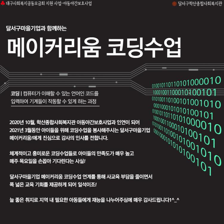[달서구학산종합사회복지관] 달서구마을기업 메이커리움 연계! 코딩수업^_^