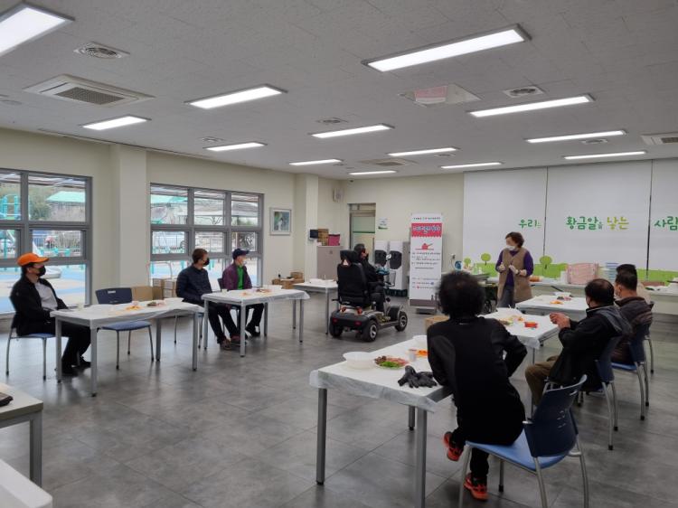 DGB사회공헌재단이 후원하고 대구사회복지공동모금회가 지원해주는 평범한 독거중장년 남성장애인들의 “우리동네 인싸되기 프로젝트”가 2021년 3월~ 12월까지 매월 2, 4째주 화요일 진행됩니다. 남성장애인들의 자조모임의 첫 번째 만남으로 “그 남자들의 밥상 ”이 복지관 급식소에서 진행되었습니다. 인싸창의요리로 맛난 음식도 만들고 함께 이야기나누며 모임을 이어나갈 계획입니다. |