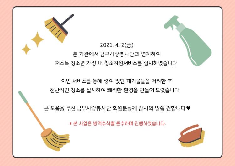 [청곡종합사회복지관] 저소득 청소년가정 청소지원서비스 실시