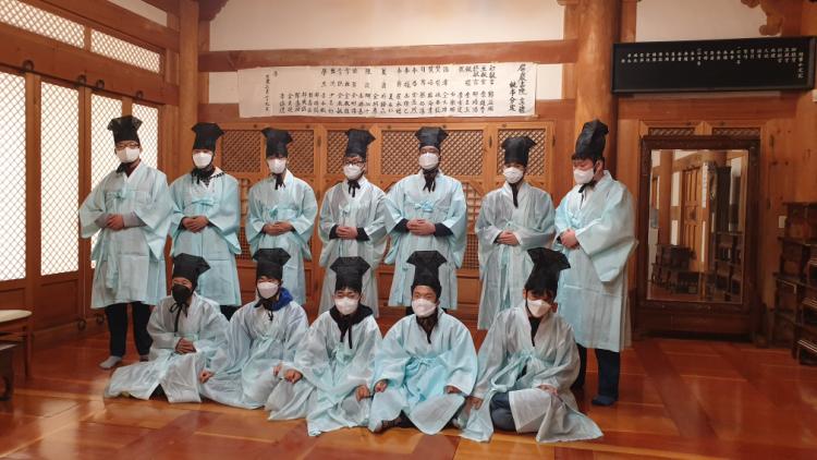 두루마기와 갓을 착용한 발자국 친구들~ 점잖은 선비처럼 자세도 취해보고 예절을 갖춰 절도 해보았네요~^^