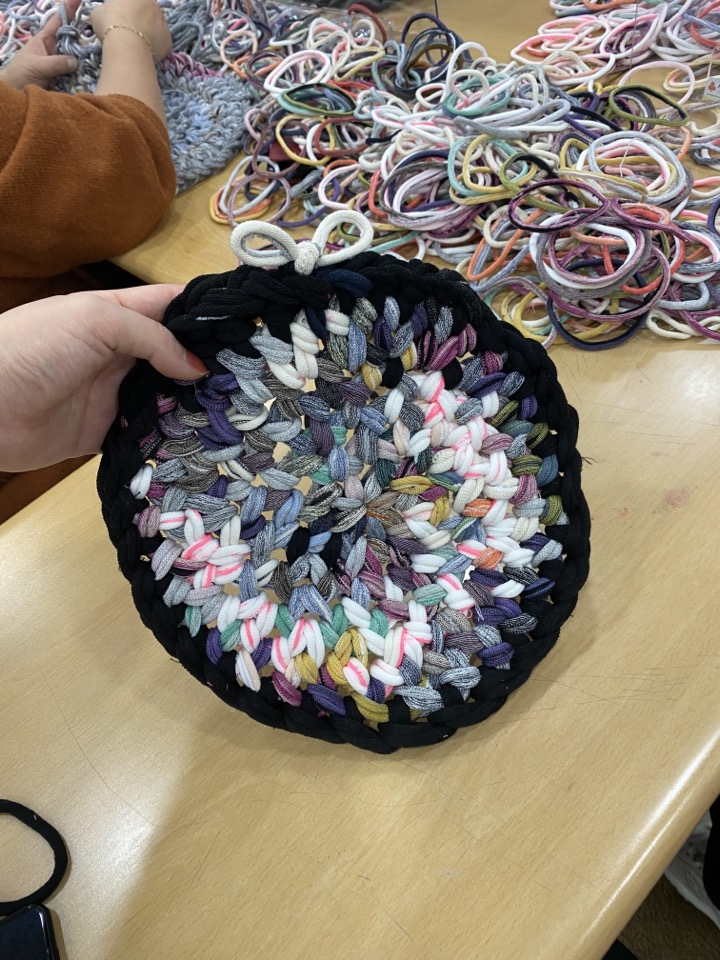 양말목을 활용하여 냄비받침대나 방석을 만들어보았습니다~! 알록달록한 색으로 다양한 색을 활용하여 만들어보며 즐거운 시간을 보낼 수 있었습니다^^~~ |