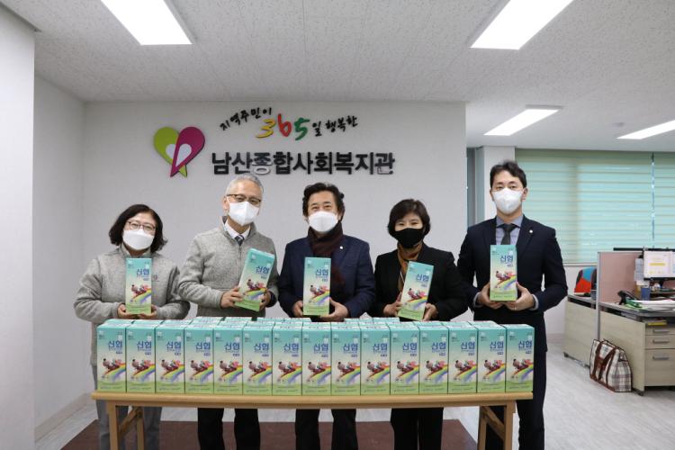 "지역주민이 365일 행복한 남산종합사회복지관입니다" 데레사 신협에서 남산종합사회복지관 청소년방과후아카데미 학생들을 위해 마스크 1,000장을 전달해주셨습니다. 전달 받은 마스크는 한지로 특별하게 만든 KF-94 마스크로 요즘 코로나 확진자가 초등학교에서 많이 발생한다고 하여 걱정 된 마음으로 직접 전해주셨습니다. 청소년방과후아카데미 학생들에게 전달해 유용하게 사용될 예정입니다.