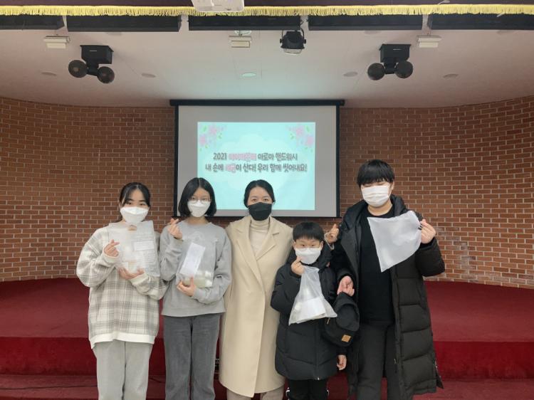 계속되는 코로나로 한동안 진행하지 못했던 저소득 아동·청소년 목욕지원사업 ‘아이깨끗해’를 12월 15일(수), 목욕탕 방문 대신 아로마 핸드워시 제작 프로그램으로 대체하여 진행하였습니다. 오랜만에 참여자들이 모여 서로 밝게 웃으면서 건강과 청결을 기원하는 마음을 담아 향기 좋은 핸드워시를 완성할 수 있었습니다. 아동·청소년들이 앞으로도 건강을 유지할 수 있도록 다양한 사업을 진행하는 복지관이 되겠습니다.^^