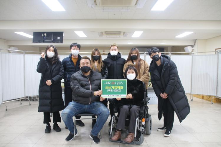 12월 27일(월), GY그룹(구성훈 회장님)에서 백미 400kg을 복지관에 후원해주셨습니다. 지역 내 저소득계층이 추운 날씨에도 따스한 온정을 느낄 수 있도록 후원해주심에 진심으로 감사드립니다. 후원해주신 백미는 지역 내 필요한 가정에 잘 지원할 수 있도록 하겠습니다.^^