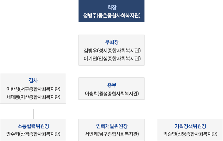 | 회 장 | 정 병 주 관장 | 동촌종합사회복지관 |